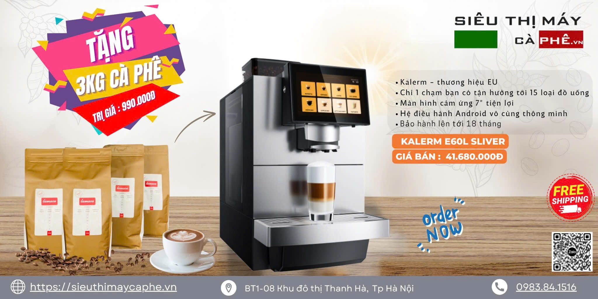 Giá bán giao hàng miễn phí trên toàn quốc: 41,680,000 đ + Tặng kèm 3 kg cà phê NGON trị giá 990,000 đ ( Tặng 12 tháng ++ bảo hành khi Khách hàng cam kết sử dụng cà phê hạt của Lamaca )