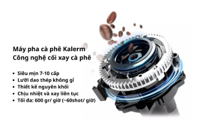 - Hệ thống khép kín của máy pha cà phê Kalerm được kế thừa từ các mẫu máy siêu đắt tiền, song đó chúng sẽ hạn chế các lỗi từ người sử dụng